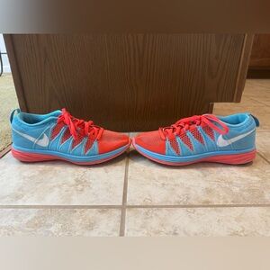 Nike Women’s Flyknit Lunar 2 Blue/Red Orange Color Size 8