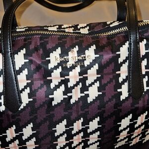 Elevate your style with this chic Kate Spade houndstooth tote bag. Featuring a striking black and purple pattern, this bag is perfect for any occasion. Its spacious design ensures you can carry all your essentials with ease. Nylon. like new condition.