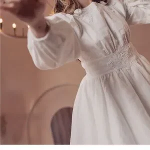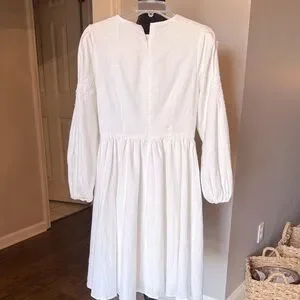 Chic white dress with floral accents. Long sleeves for a classic look. Ideal for versatile styling. Quiet Luxury
