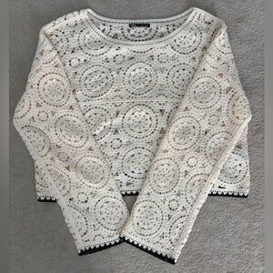 Chic crochet lace design. Long sleeves with black trim. Perfect for layering! Cropped. Size Medium. New and never worn!