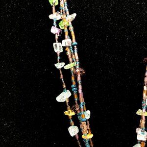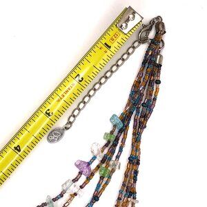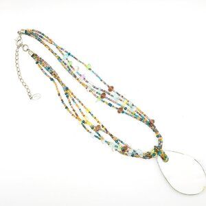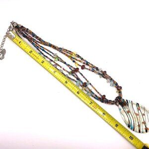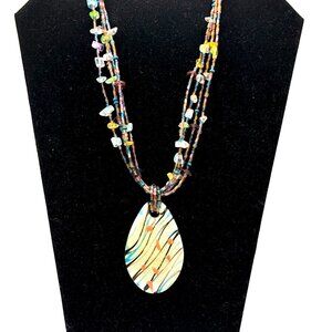 CJ Signed Multistrand Art Glass Necklace – Teardrop Pendant – Boho Statement