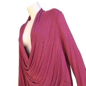FEVER Raspberry Pink Faux Wrap Top 1X Long Sleeve Knit Draped Baggy Loose Fit