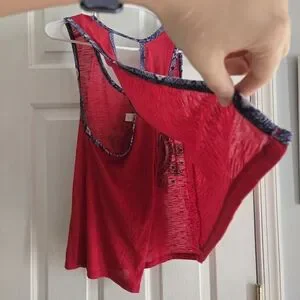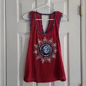 red, polyester, moon, hippie, open back, backless, sleeveless, tank, cami, no boundaries, large