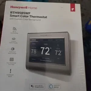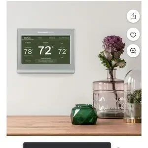 The Honeywell Home Smart Color Thermostat is a programmable, communicating thermostat with a 7-day schedule and WiFi connectivity . It features a bright, easy-to-read touchscreen display that can be customized to match your home's decor. The thermostat is compatible with voice assistants like Amazon Alexa and Google Assistant, and can be controlled remotely through the Total Connect Comfort or Resideo app. It also provides monthly energy reports, smart alerts for air filter changes and extreme temperatures, and is ENERGY STAR certified . The thermostat auto-switches between heat and cool modes and learns your comfort levels to deliver the right temperature. It comes with a 1-year warranty and measures 3.5 x 4.5 x 0.8 inches