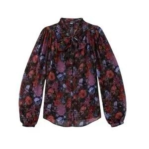 💫HOST PICK‼️💫 100% SILK‼️ NWT PAIGE Elynne Floral Blouse w/ Neck Tie in Black, Size XXS.