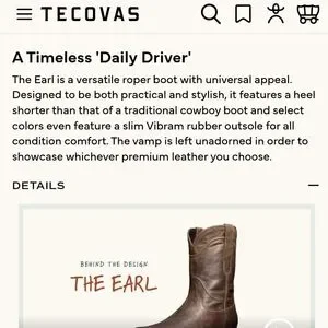 Tecovas Men's Size 7.5 The Earl Brown Leather Western Roper Boots. Preowned in great condition, wear on the soles. No box. See photos.