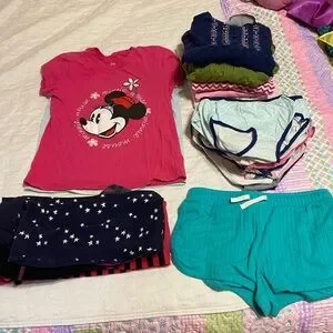 Misc bundle of girls clothing in mostly size 7-8. Brands are Disney, Cat and Jack, etc.