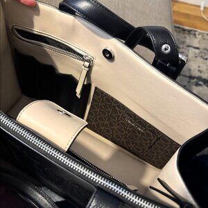 Take on the day with this tote by Calvin Klein. Featuring a structured silhouette, it opens up to a functional interior with plenty of compartments to keep you organized.