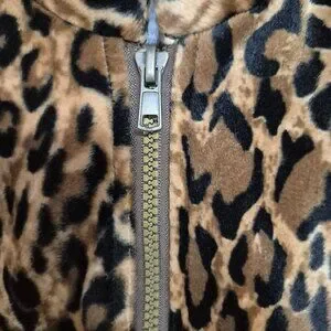 A stylish and cozy leopard print faux fur vest, ideal for layering in cooler weather. Features a zip closure and soft polyester lining.