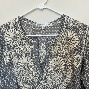 Gretchen Scott Women's Floral Embroidered V-Neck Tunic Top Blouse Size Small