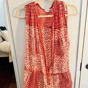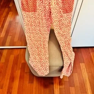 This stunning cotton jumpsuit is printed with floral and batik style prints. Button closure down neckline. Sleeveless with drawstring at shoulders and waist.Patch pockets. Excellent Condition