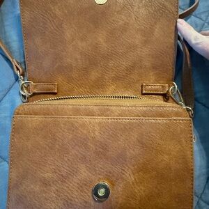 Discover style and functionality with this chic brown leather crossbody bag. Perfect for daily use, it features an adjustable strap for comfort and ease. Size is 8” x 5”