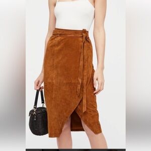 Free People Tan Suede Midi Skirt