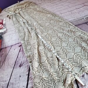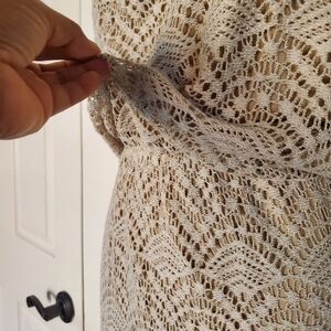 Step out in style with this elegant tan lace maxi dress. Pullover with two buttons on the back neck. Elastic waist. Lined. Back slit. New without tags. Please see pictures for details and let me know if you have any questions I ship the next business day