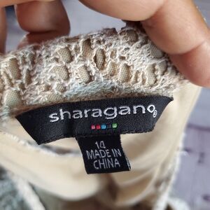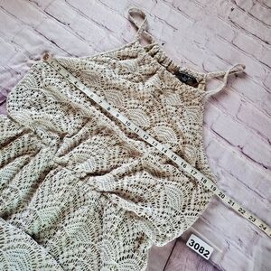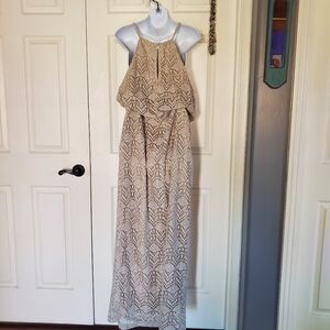 Sharagano Lace Maxi Dress Halter Sleeveless Beachy Summer Bohemian in Bone Sz 14