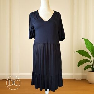 Karen Kane Navy Tiered Midi Dress – Size XL – Excellent Condition