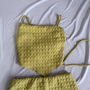 Blue Blush Lime Green Textured Two-Piece Skirt Halter-neck Set Size Small