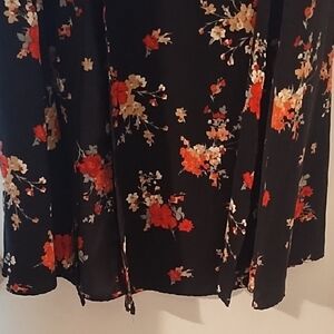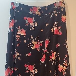 Chic maxi skirt with vibrant floral design. Ideal for versatile styling. This is a beautiful, lightweight long length maxi skirt. The waist has a zipper in the back and sits higher around the waist. There are two high slits in the front that fall midway to the knees. It doesn't have the tag, but it has never been worn after buying at a department store.