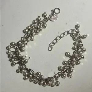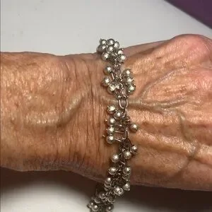 Pre-loved. A fun stamped .925 sterling beaded bracelet, with a brushed texture to the beads, perfect for any occasion. One inch extender. Lobster clasp closure. Add a touch of sparking movement to your outfit.