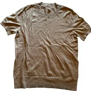 Set of 3 J. Crew Scalloped Short Sleeve Crewneck Cotton Sweaters Size Large. Lightweight and soft. Three colors, a peach, white and light gray. Excellent condition. Comes from a non smoking home.