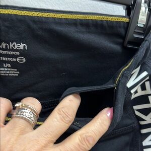 Sleek black leggings with bold Calvin Klein logo on the sides. Ideal for everyday style. The size says large, but fits medium unless it stretch it really bad.