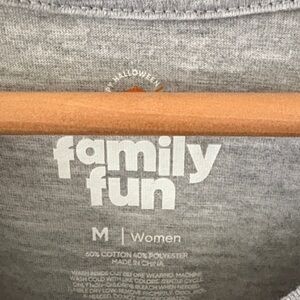 Gray tee with Snoopy and pumpkin graphic. Short sleeves. Casual and fun style. Women’s size M