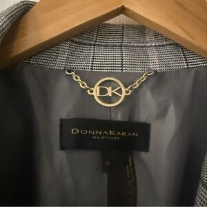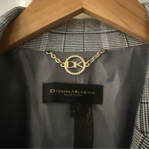 Sophisticated checkered blazer by Donna Karan. Ideal for professional settings. Classic and stylish design.