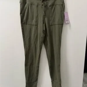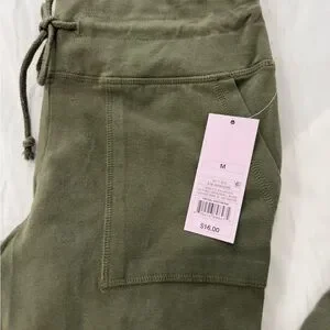 Stylish olive joggers with a relaxed fit. Features a drawstring waist and side pockets. New with tags.