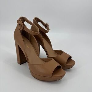 Sun + Stone Women's Tan Reeta Peep Toe Block Heel Platform Sandals Size 10.