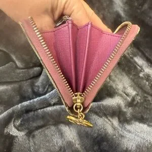 Slight wear on corners, coin compartment could use a wipe down. I have not attempted to clean this item, however, a trip to the cobbler for a new zipper would make her brand new.
