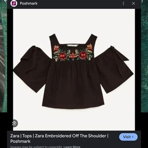 Chic black off-shoulder top with vibrant floral embroidery. Perfect for adding a touch of elegance to any outfit.