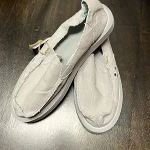 Comfortable Sanuk flats. Soft canvas material. Easy slip-on design.