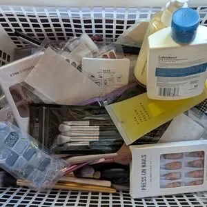 first picture is a random box from the pile and the additional pictures are the products that are in those boxes A collection of high end assorted beauty and skincare products featuring various brands and colors. some of the products have been open to see the colors. if they have been touched. they have been disinfected. I had to keep some of the really good stuff for you that had been looked at