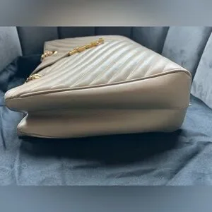 Saint Laurent Grain De Poudre Matelasse Chevron Monogram Shopping Bag Nude Powder