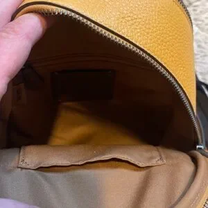Like new! Used once. Coach Compact mustard backpack with sleek design. Features front pocket and secure zip closure.