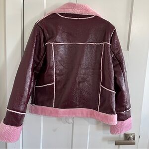 Boohoo Women’s Faux Fur/Leather Lined Sherling Burgundy/Pink Crop Trucker Jacket