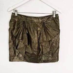 Ted Baker London Metallic Gold Linen Ruffle Skirt