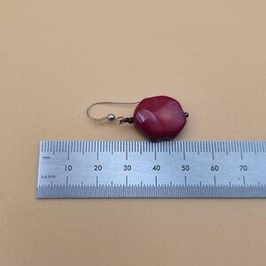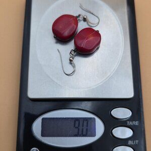 Sterling Silver Red Coral Chunk Dangle Earrings A5274