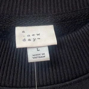 Stylish black sweatshirt featuring embroidered details. Perfect for casual wear. Brand new with tag, never worn, A New Day, Women's Size Large, long sleeves, embellished details-( clear rhinestone like) sparkly & clear adding a hint of shine, relaxed fit, crewneck, pullover style, comfy, cozy, cotton/polyester blend, machine washable, please see pictures for approximate measurements
