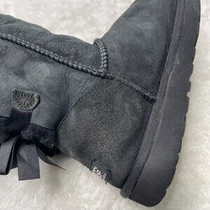 UGG Kid's Black Bailey Bow II Exotic Suede Boot Round Toe Shoes Size 4 US