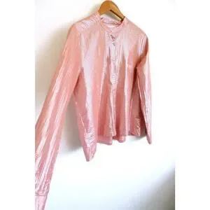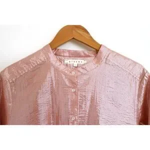 XIRENA Graycen Shimmer Lurex Cotton Button Down Shirt Top Garmentory L $225