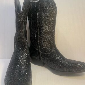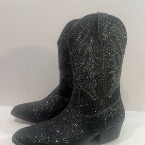 Step out in style with these glittering black heeled boots. Perfect for adding elegance to any outfit.Like new Never been worn.