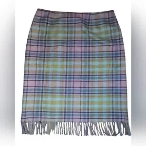 J Jill Plaid & Fringed Skirt Grey Blue Green Size 14P Lined