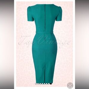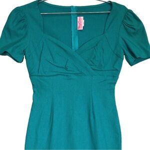 Pinup Couture 50s Erin Short Sleeve Wiggle Dress in Jade, Small, EUC