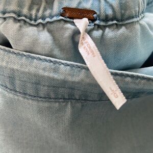 Free People blue chambray off shoulder shirt. Flow bodice, adjustable straps. Women’s size Large. Never worn.