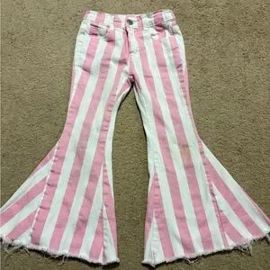 Girls 5T Pink and White Striped Flare Jeans, pockets, bell bottoms