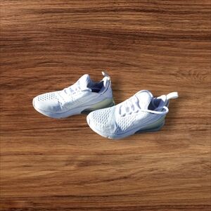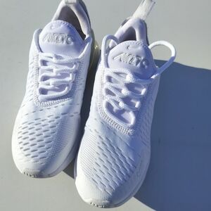The product is a pair of women's Nike Air Max 270 athletic sneakers triple white. These sneakers are part of the Nike Air Max product line and feature the signature Air Max technology for comfort and style. Designed specifically for women, they offer a sleek and trendy sneaker style suitable for various athletic activities or casual wear. The Nike Air Max 270 model is known for its unique design and performance features, making it a popular choice among women who prioritize both fashion and functionality in their footwear. PLEASE, Feel free to message with any questions or offers Thanks