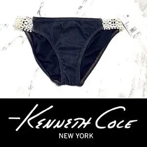 Kenneth Cole Reaction Indigo Denim Crochet Bikini Bottom: Size Small New With Tags