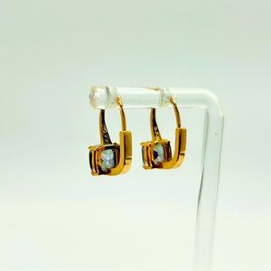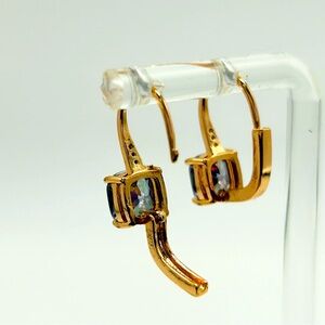 (Reserved) CZ Mystic Rainbow Stone Earrings – 18K Plated Rose Gold Leverbacks