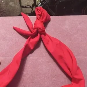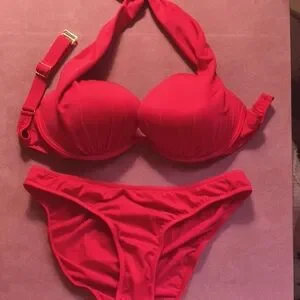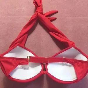 Chic red bikini with halter top. Perfect for beach days. Comfortable and stylish.